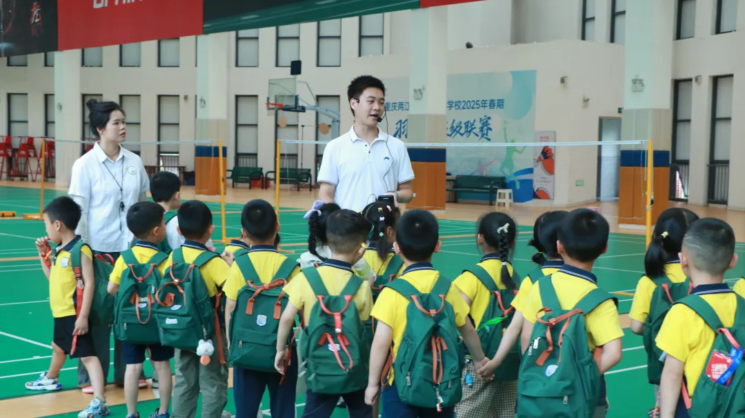 来自翡翠华庭、协信星都会、恒大山水城三所幼儿园的346名萌娃,也走进了两江新区重光小学,开启一场“沉浸式”的幼小衔接之旅。孩子们进入小学时,恰逢大课间活动时间,欢快的音乐声将他们吸引到操场。只见哥哥姐姐们排着整齐的队列正在做广播体操,看着他们的整齐划一的动作,孩子们忍不住跟着摆动起小身子。
